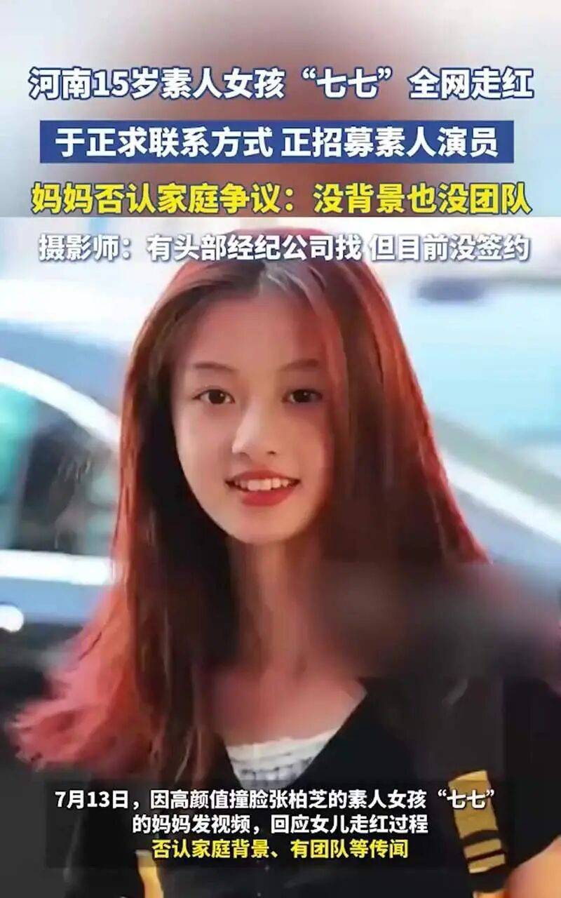 15岁的七七因2025年一条素颜街拍视频神似张柏芝走红,签约经纪公司后,母亲曾公开鼓励女儿追梦,间接带动对其本人颜值的关注,折射出公众对“美貌遗传”的本能兴趣。
